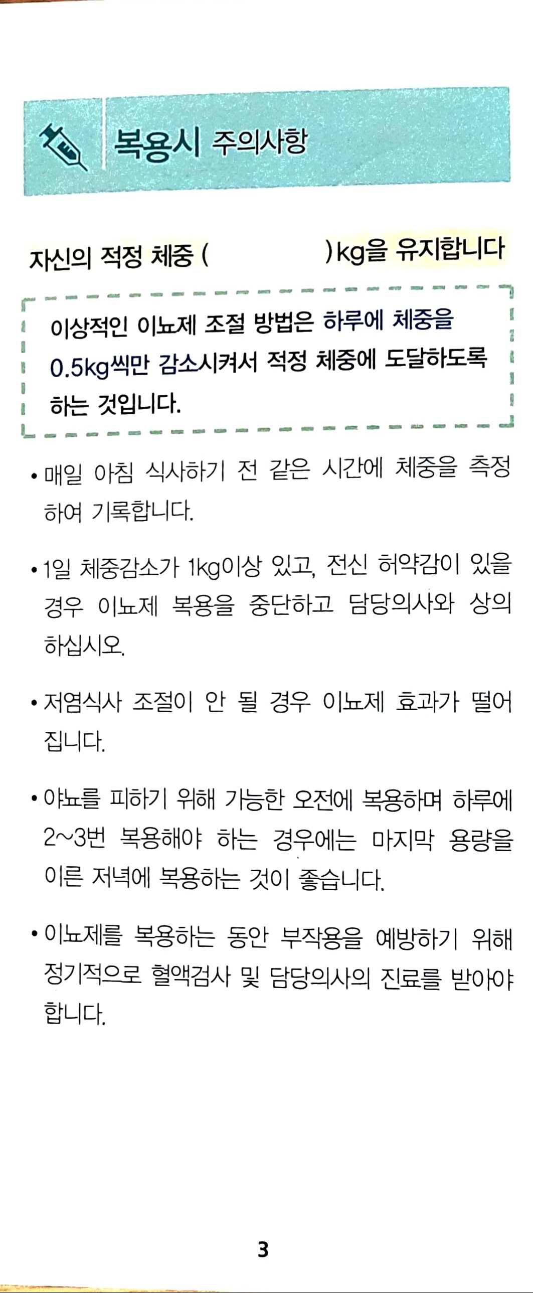 이 소책자는 간질환 환자의 이뇨제 복용에 관한 내용이며, 심혈관질환 환자나 신장(콩팥)질환 환자용이 아닙니다. 그건 자기 병을 봐주시는 주치의 선생님께 여쭤보세요.
