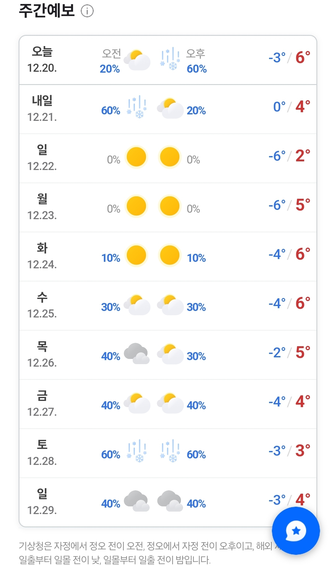 2024.12.20.금~ 12.29. 기상청 날씨: 21일 토요일 대설특보 본문