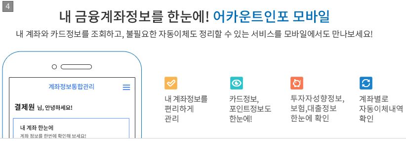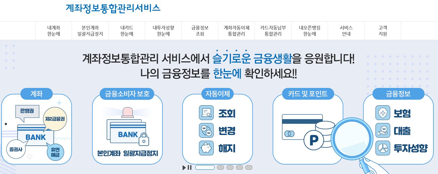 계좌정보통합관리서비스(은행, 증권, 보험, 카드, 대출, 오픈뱅킹 조회) 본문
