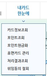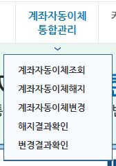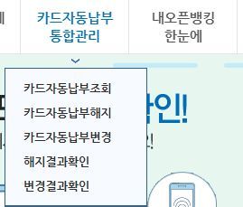 여러가지 조회할 수도 있고, 카드포인트를 현금화할 수도 있고, 계좌와 카드 자동이체 등록된 것을 조회하고 해지하는 메뉴도 있습니다.