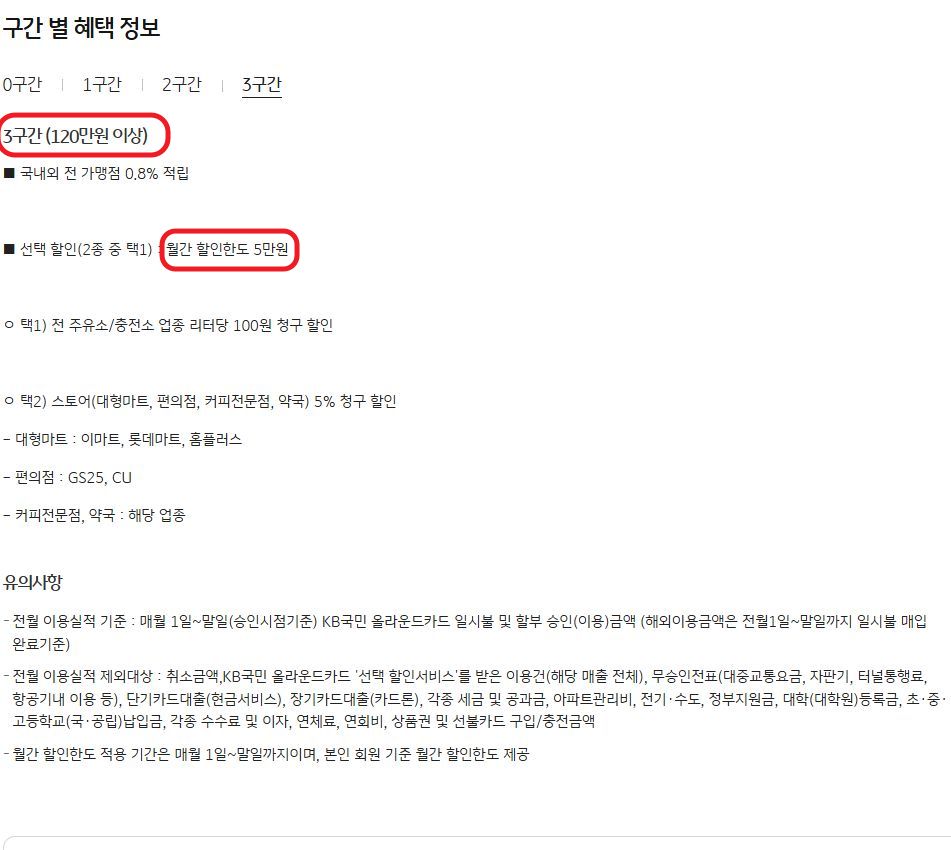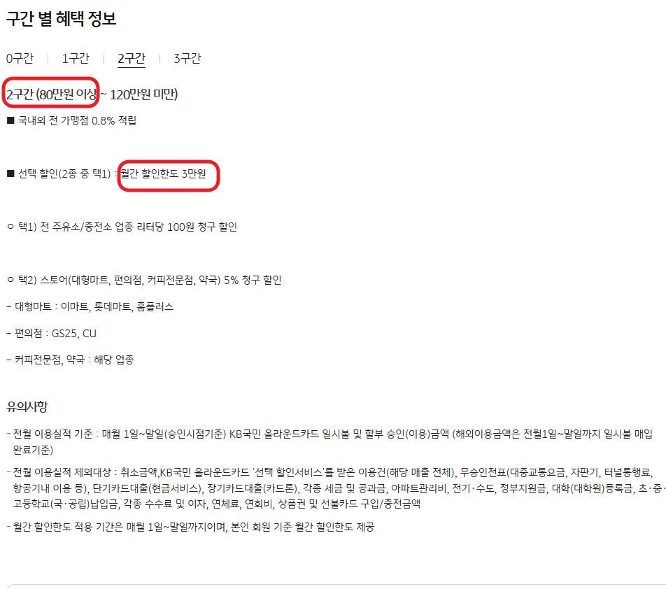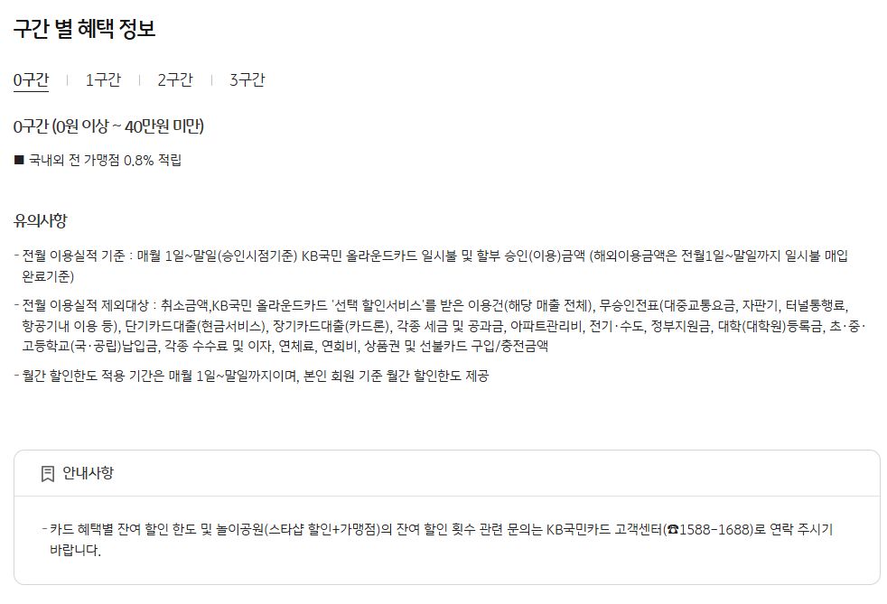 (KB카드) KB올라운드카드 혜택구간 (월 실결제 40만원부터): 청구할인 본문