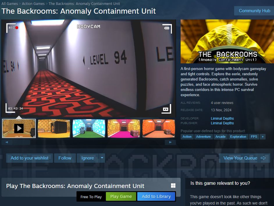 https://store.steampowered.com/app/3307270/The_Backrooms_Anomaly_Containment_Unit/