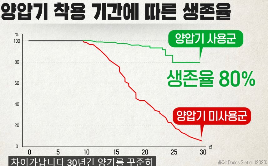 하지만 평생 하면 생존율차이는 이렇게 극적으로 좋아진다. 죽기 전까지의 삶의 질 차이도 크다.