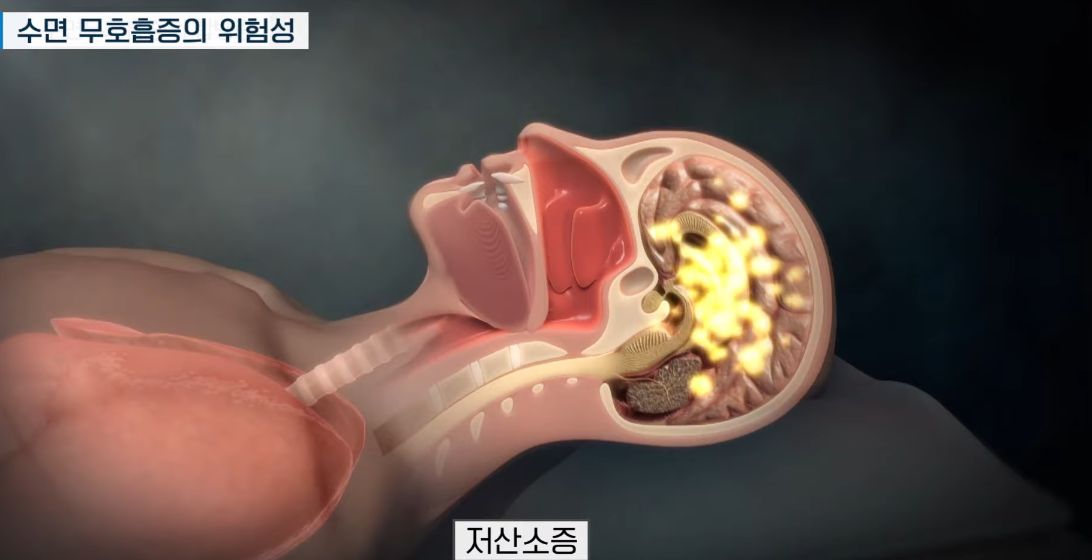아무도 모르는 새 밤마다 저승고개를 넘을까말까하는 상태까지 악화돼있던1 증상이, 어느 날 저녁 술과 피로에 떠밀려 넘어가버리고, 그래버리면 샤워하고 잠자리에 들었는데 다음 날 아침에 시신으로 발견될 수 있는 무서운 병. 이게 급성인 이야기고 만성인 경우는, 수면 중 만성적인 산소부족으로 자도 자도 낮에 피곤하고, 뇌와 심장이 자꾸 망가져 수명과 심장기능과 뇌의 지성을 무너뜨려갑니다.