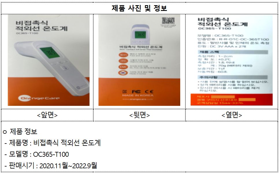 코로나19가 유행하던 2020~2022년간에 유통하고 단종한 상품인데 그 후에 적발한 모양입니다.