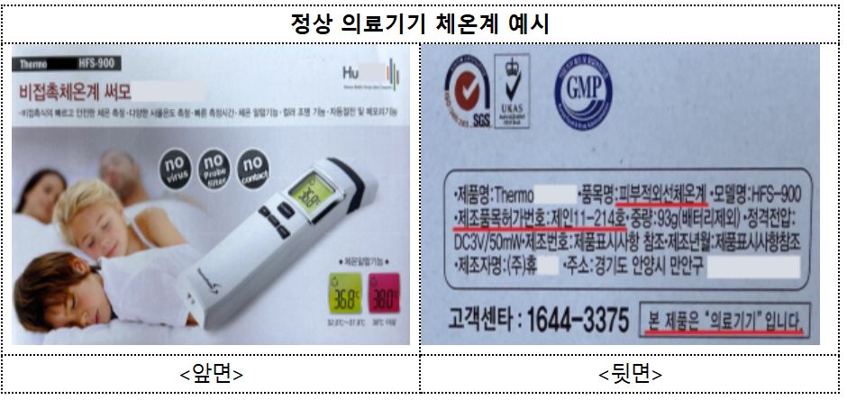 체온계 구매 시 제품 포장에서 ‘의료기기’라는 표시와 ‘의료기기 품목 허가번호’ 등을 확인해야