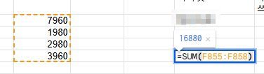 =sum( 까지만 입력하니 알아서.. 아직까지는 저렇게 못 해주는 경우도 있지만.