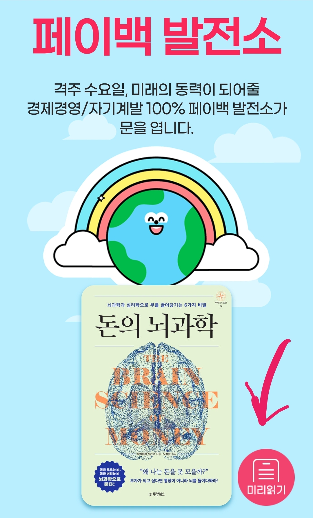 페 이 백 발 전 소 페이백 발전소 격주 수요일, 미래의 동력이 되어줄 경제경영/자기계발 100% 페이백 발전소가 문을 엽니다.