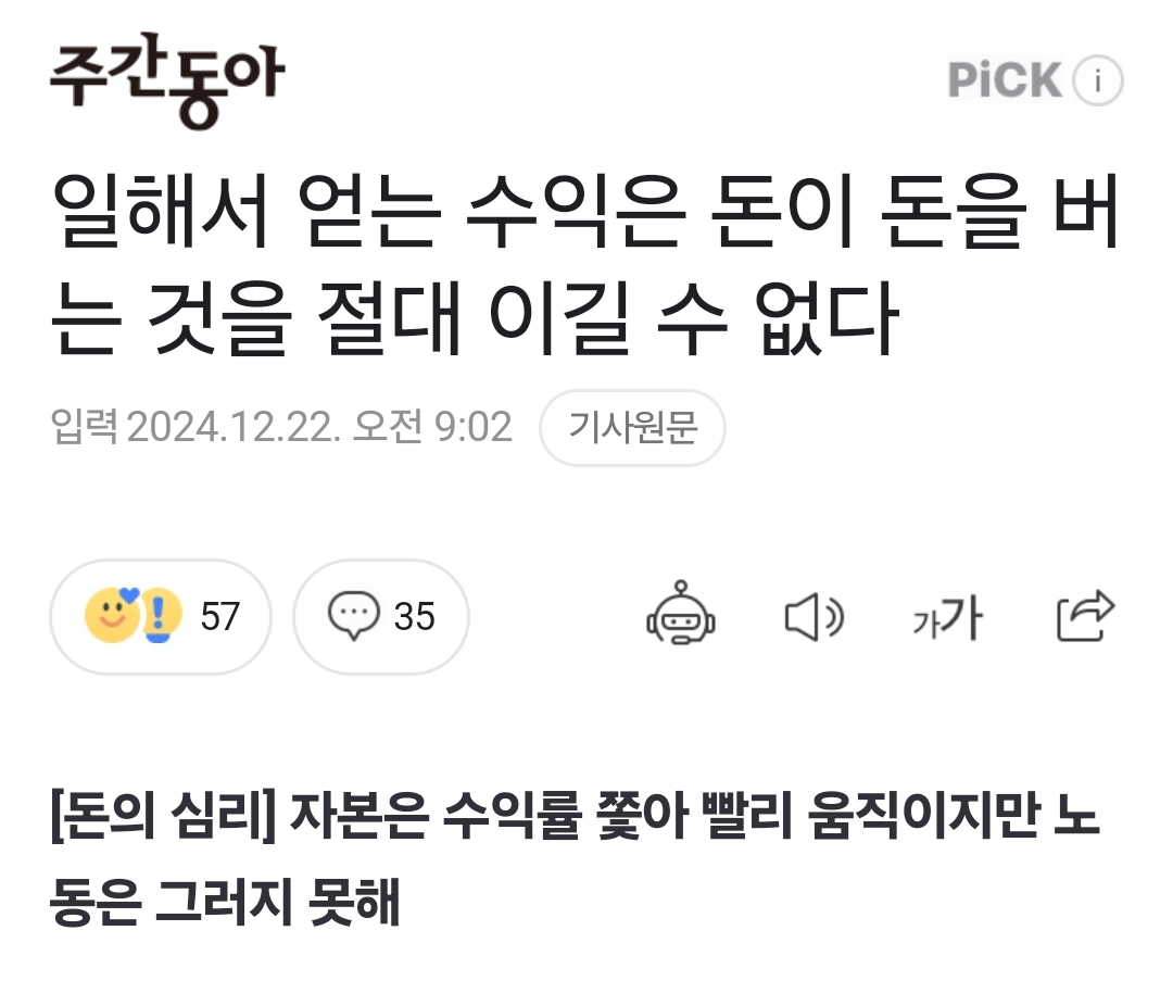 일해서 얻는 수익은 돈이 돈을 버는 것을 절대 이길 수 없다