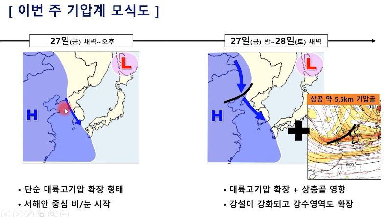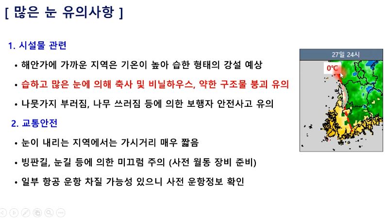 12월 27일 금요일 추위 강타. 충청과 전라권에 대설 특보. 최대 20cm의 많은 눈. 대비 바랍니다. (24년 12월 26일 기상청 예보브리핑)