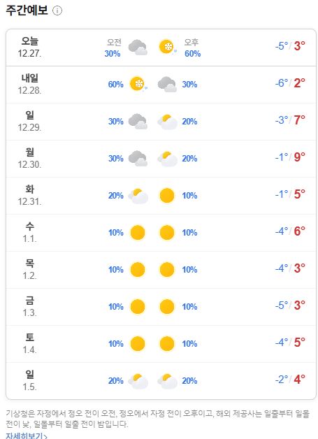 2024.12.27.금~ 2025.1.5.일: 주말 충남/전라 대설, 그리고 추운 날씨 본문