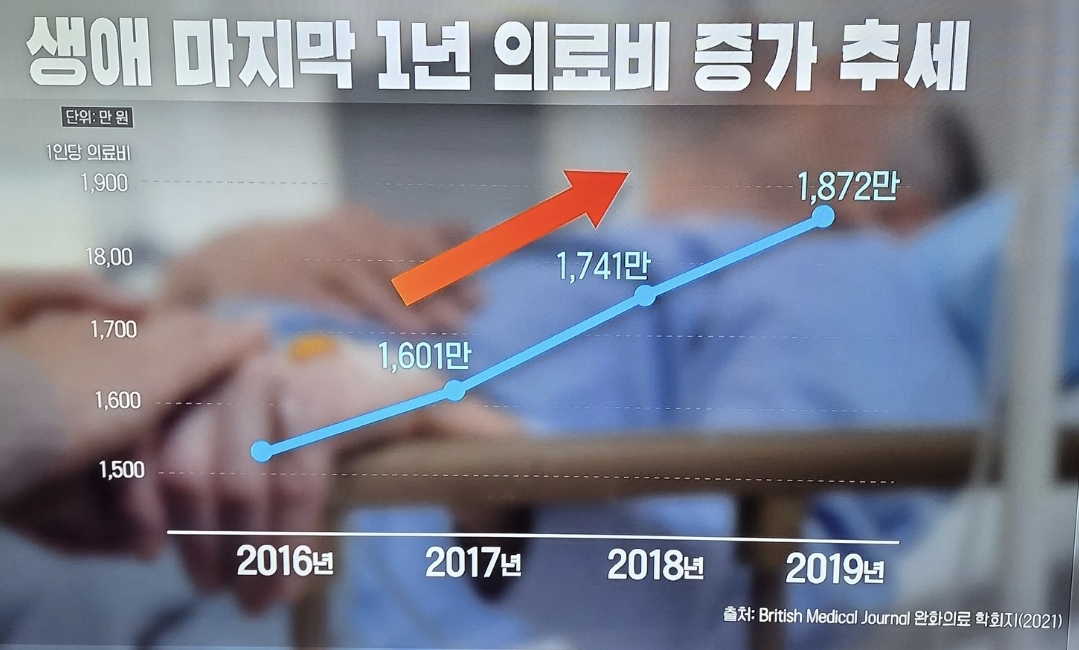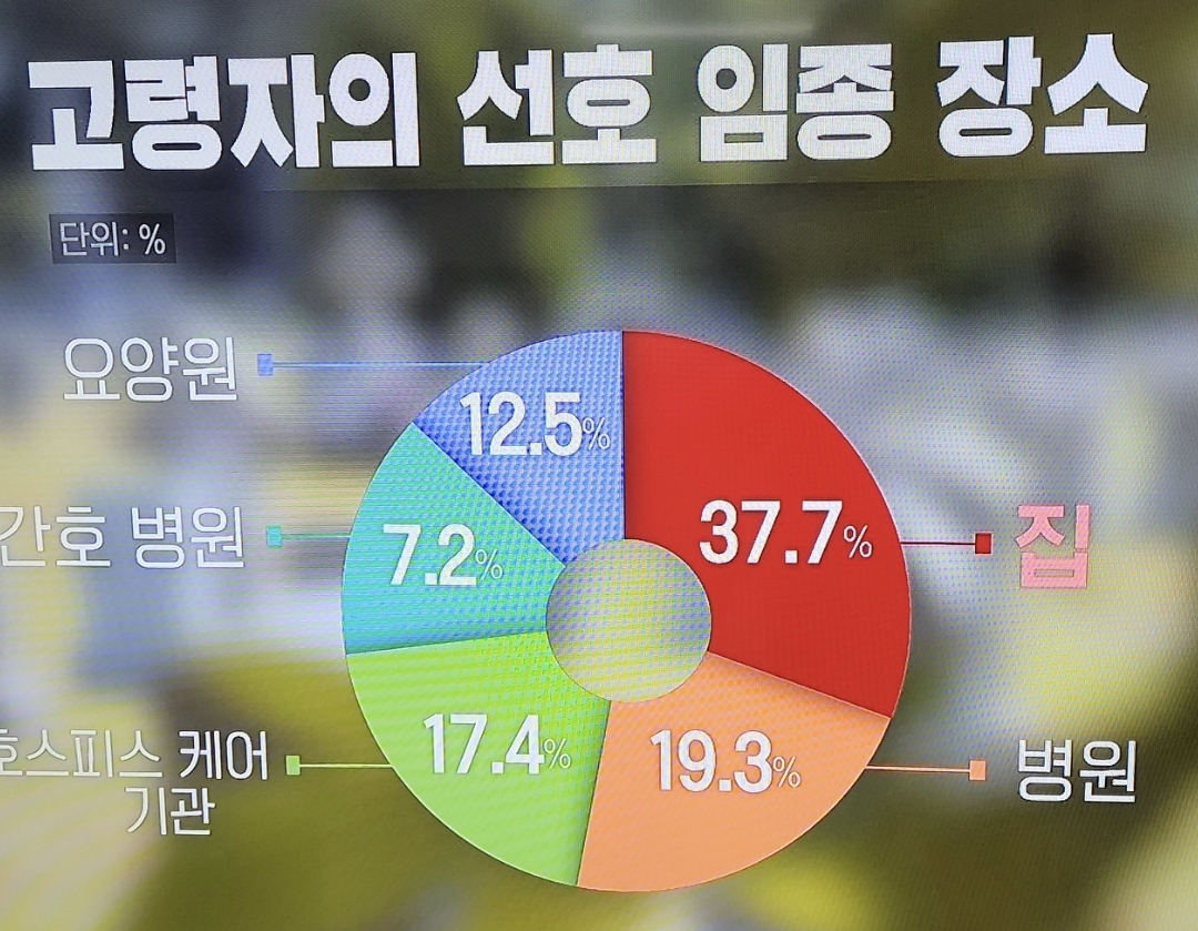 설문조사해보먼 대부분 집에서 임종하고싶어하지민 실제로는 대부분 병원에서 마지막을 보낸다.