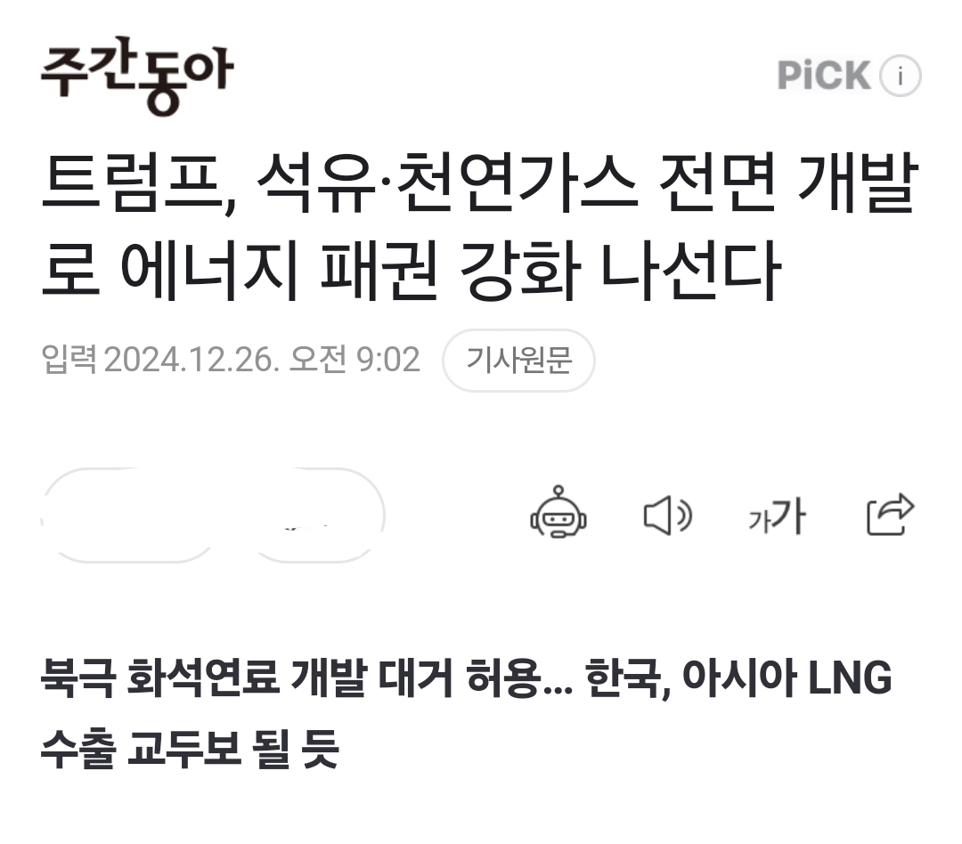 트럼프는 2025년 1월 20일 취임 이후 △파리기후변화협약 재탈퇴 △알래스카 북극국립야생보호구역 시추 허용 △화석연료 활성화 등 에너지 정책을 적극 추진할 계획이다.