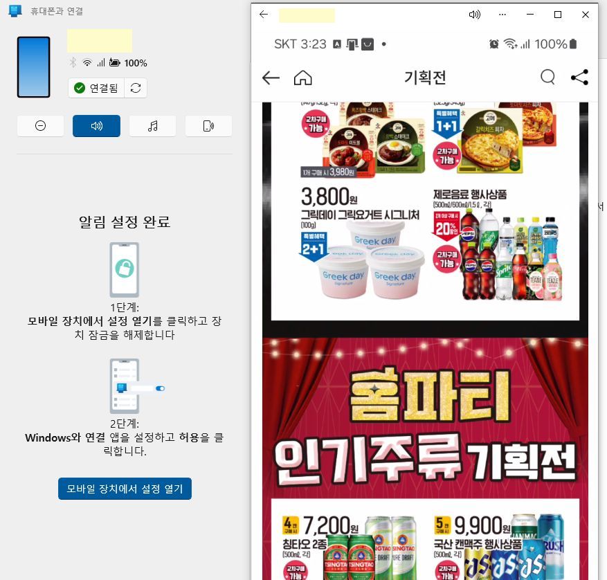 단점은, 앱을 사용하는 동안은 전화기에서 "잠금 해제"를 해주어야 한다는 것. 그리고 이것은 미러링(mirroring)이기 때문에, 컴퓨터에서 앱을 사용하는 동안은 전화기 화면도 계속 켜져있습니다.