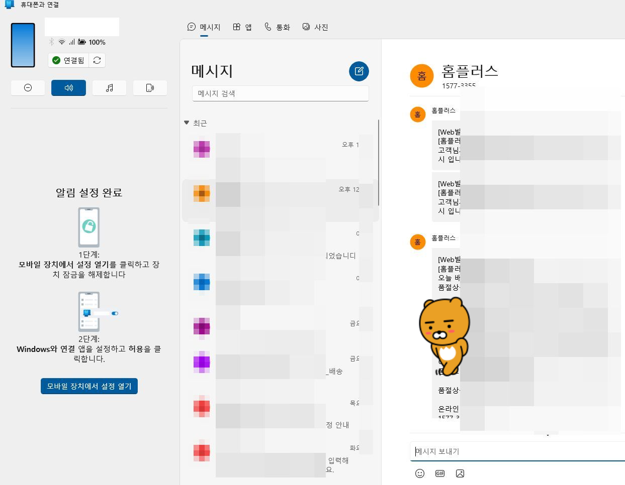 클릭하면 문자메시지화면을 볼 수 있습니다.