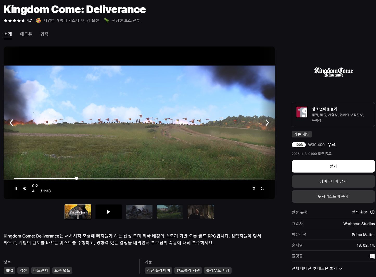 (에픽게임즈 무료게임) Kingdom Come: Deliverance 본문
