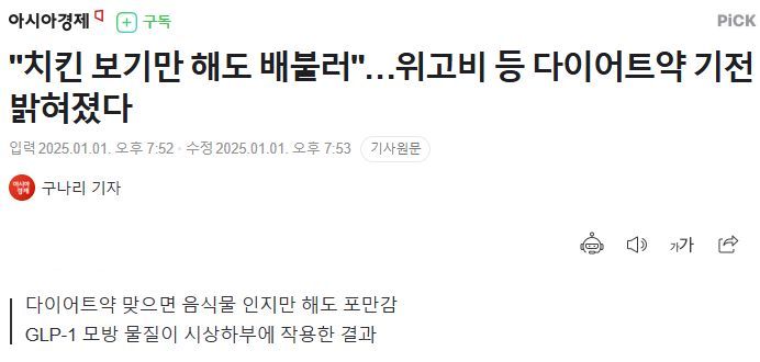 "치킨 보기만 해도 배불러"…위고비 등 다이어트약 기전 밝혀졌다