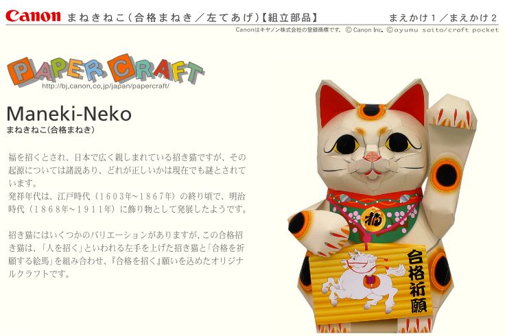 Lucky Cat (Good Luck Charm) - Lucky Items - Decorative - Paper Craft - Canon Creative Park