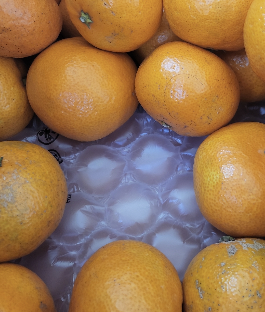 그래서인지 요즘은 10kg 들이 귤박스에 실중량 9kg을 넣는다고 상품설명에 고지하고, 그 대신 나머지 공간에 뽁뽁이(방울이 아주 커서 과일 완충재역할하는)를 대서 보내주기도 합니다.
