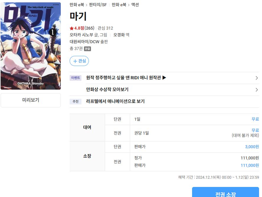모르지아나: 마기 (애니메이션)/:/ 코믹스 1권 무료 맛보기 (리디북스) 본문