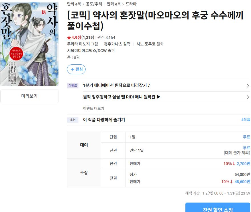 [코믹] 약사의 혼잣말(마오마오의 후궁 수수께끼 풀이수첩) - 최대 90% 할인! 웰컴 마크다운