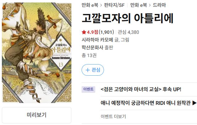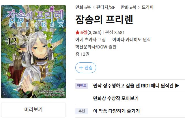 | 책벌레의 하극상 (라이트노벨, 코믹스) 각 1권 맛보기 (리디북스) (0) | 2025.01.08 |