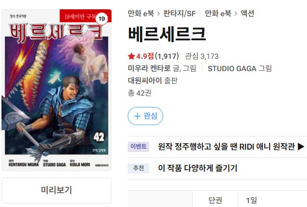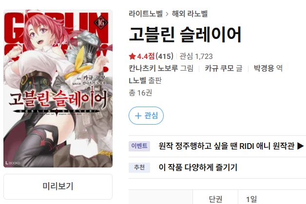 고블린 슬레이어(라이트노벨), 베르세르크(코믹스): 첫 권 1일 무료대여 맛보기(리디북스) 본문