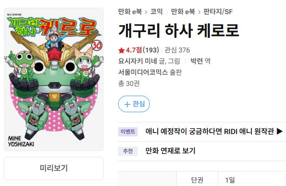 개구리 하사 케로로(개구리 중사 케로로)(코믹스) 1~3권 1일무료대여 리디북스 본문