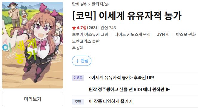 이상적인 기둥서방 생활 (라이트노벨), [코믹] 이세계 유유자적 농가, 첫 권 1일 무료대여 (리디북스) 본문
