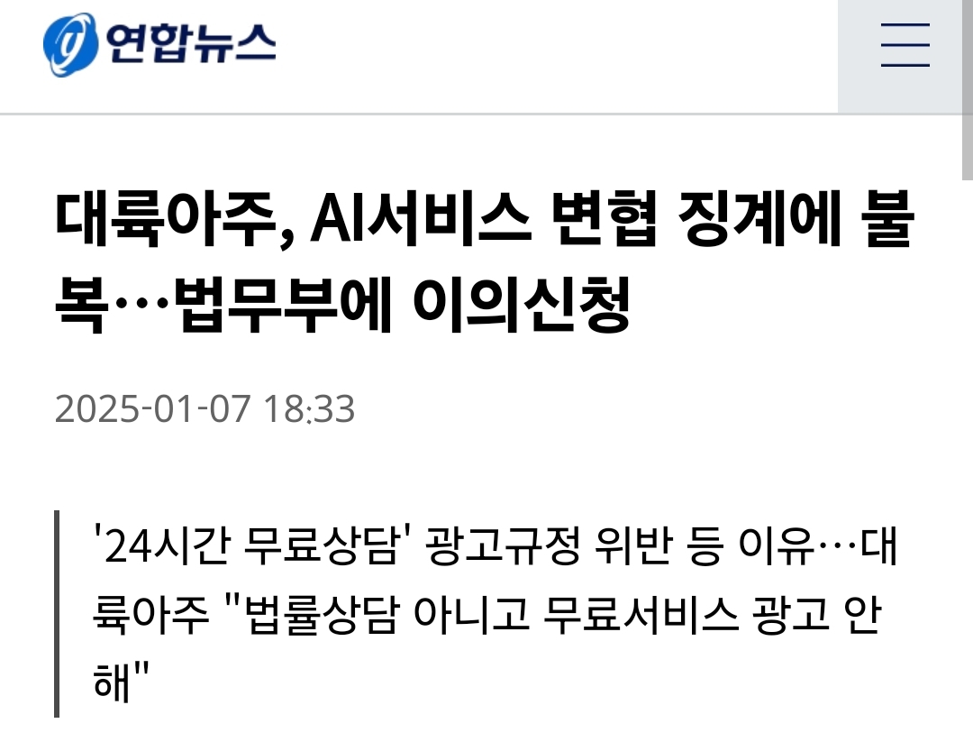 AI 대륙아주, 법률문답 챗봇(?) 서비스 중단 관련기사 본문