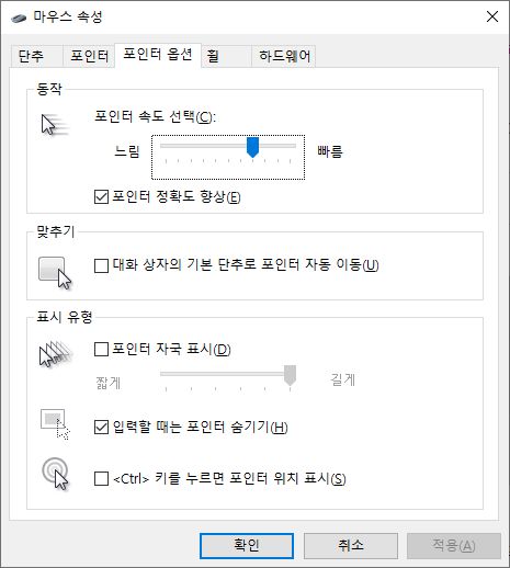 윈도우10 마우스 설정 본문