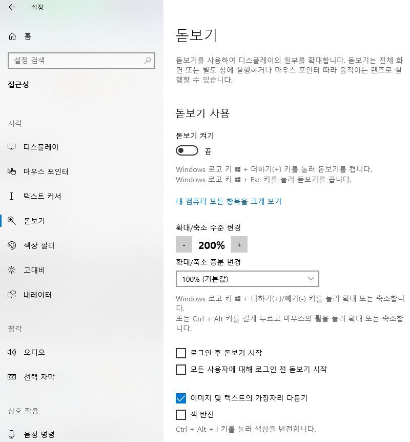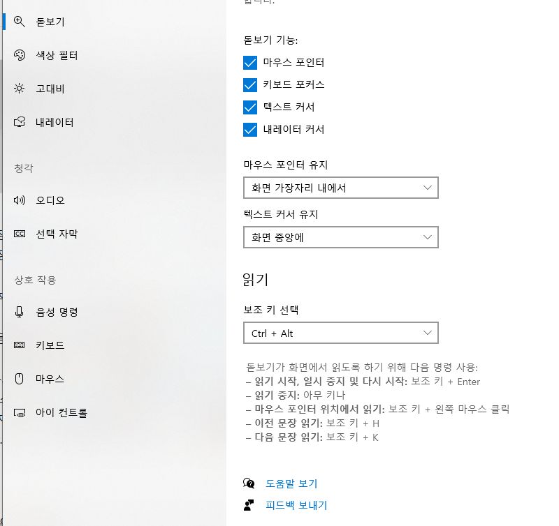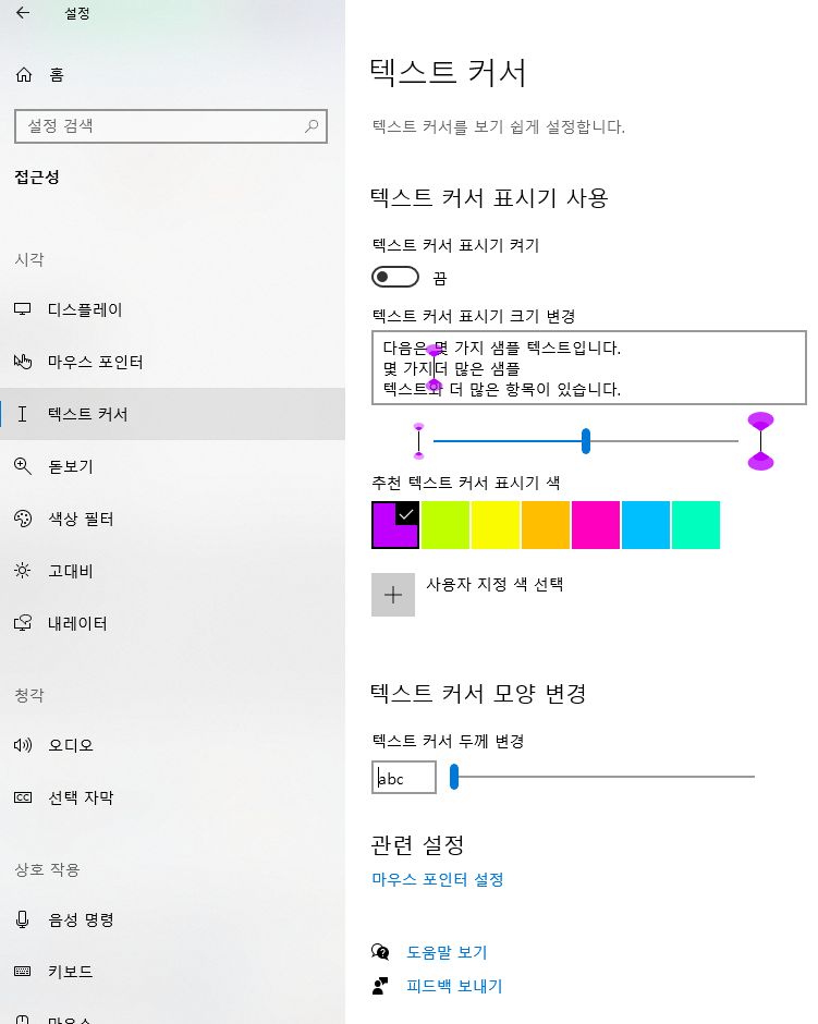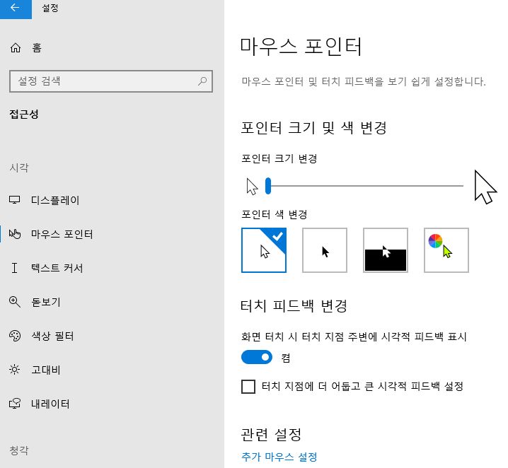 마우스 및 커서 크기 설정 등
