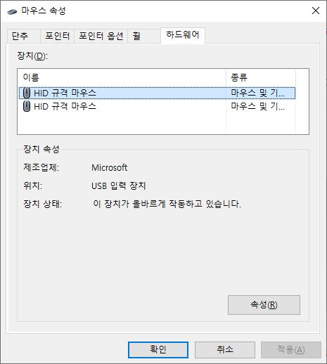 추가 마우스 속성