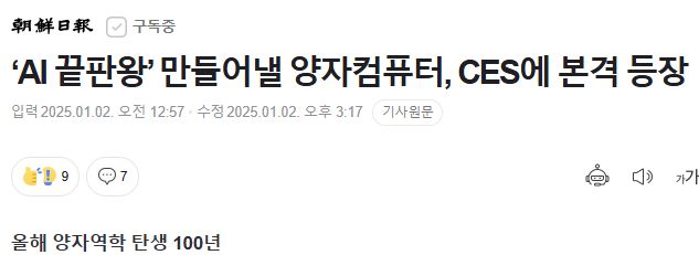 ‘AI 끝판왕’ 만들어낼 양자컴퓨터, CES에 본격 등장 - 조선일보 2025.1.2.