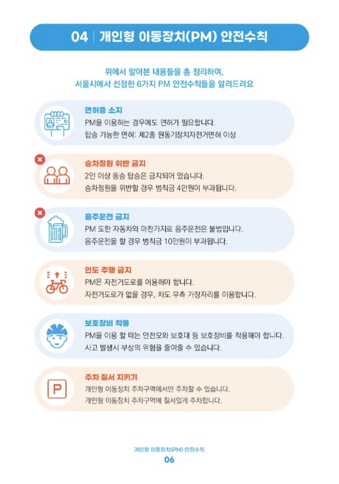 개인형 이동장치(PM) 안전수칙 - 서울특별시 2024.6. 본문