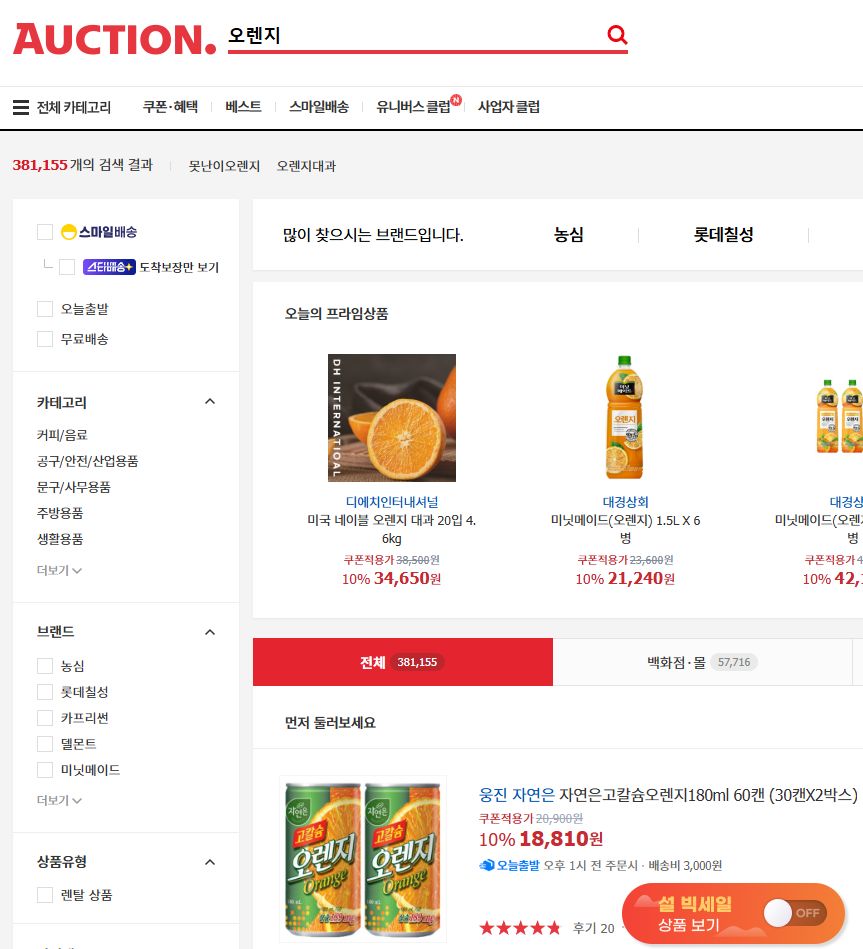 상품검색창에 "오렌지"라고 치니까,