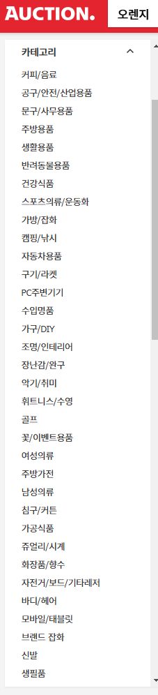 다시 보니 지마켓도 이런 식으로 보이네요. 다만 지마켓은 1차 분류 카테고리 갯수가 옥션보다는 적은 듯.