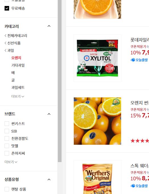 과일 오렌지를 찾고 싶어서 카테고리를 여니까,