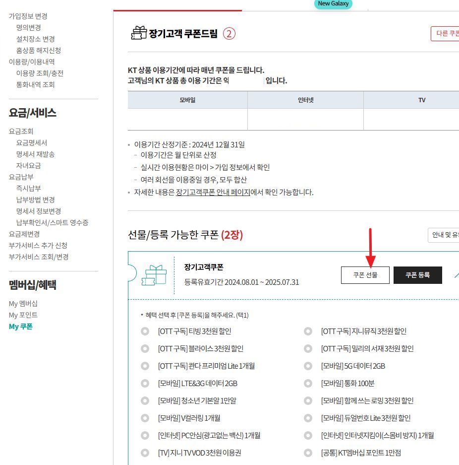 장기고객쿠폰 자체는 장기가입자라면 일단 나오는 것 같은데(다 그런지는 모르겠네요),