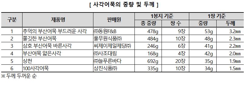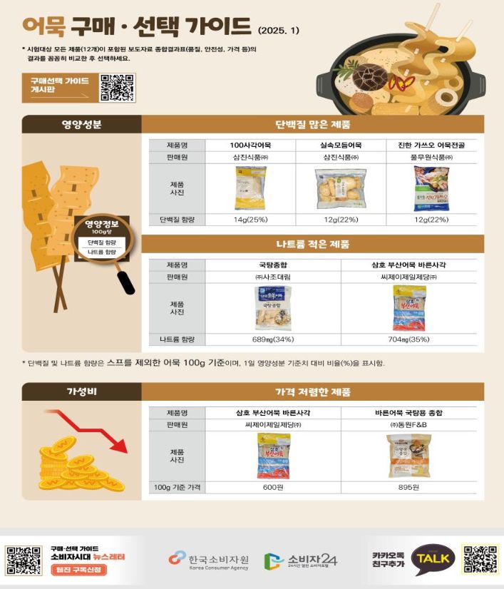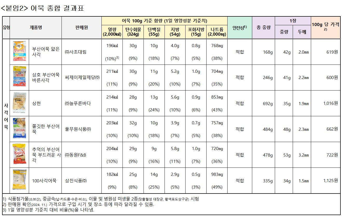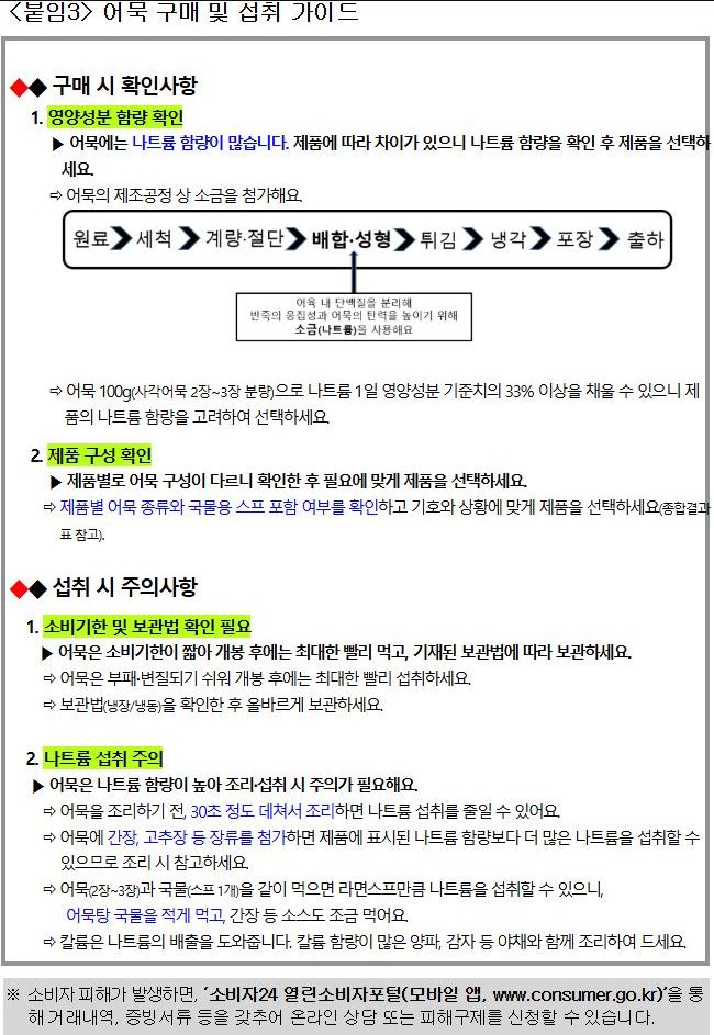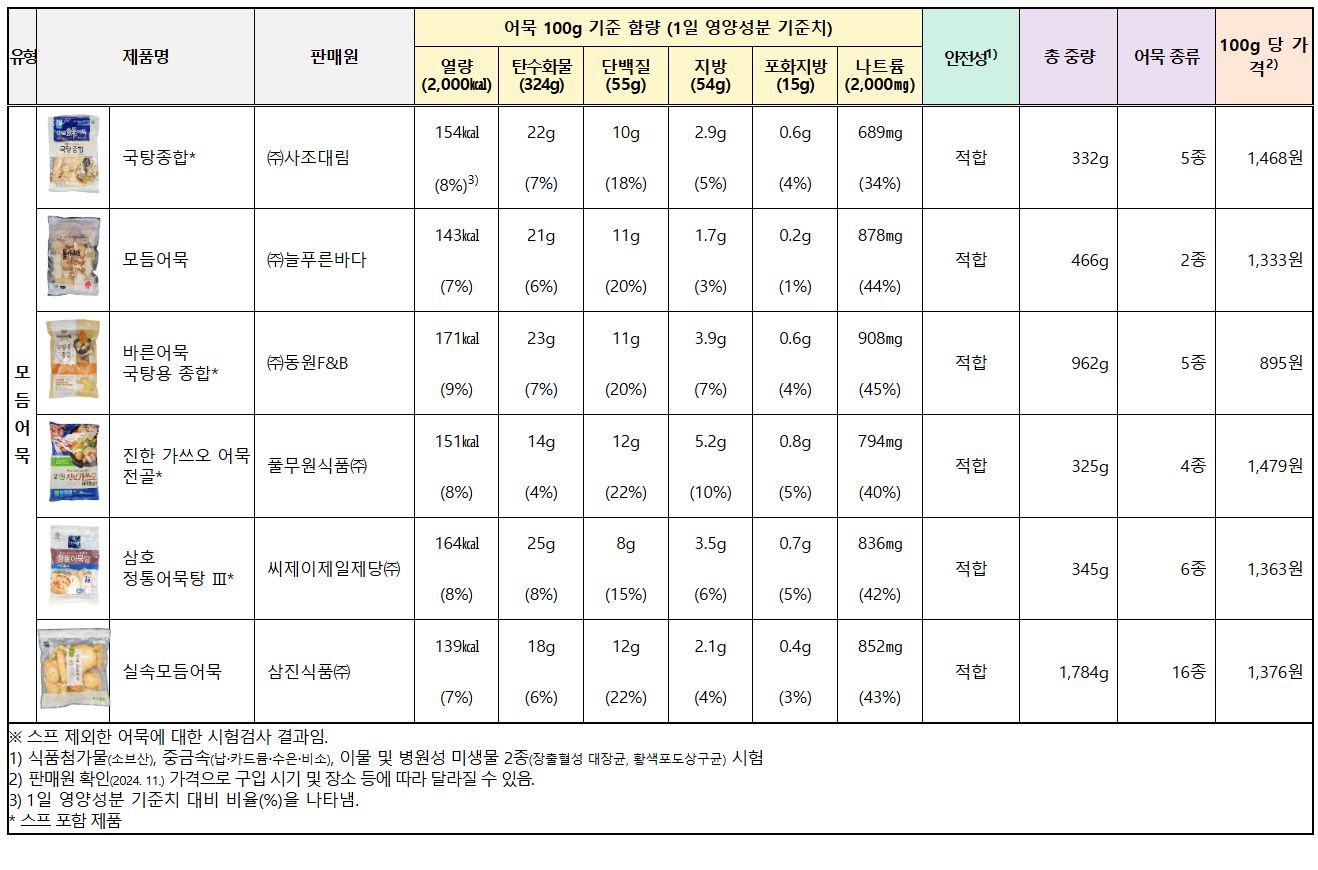[어묵 품질비교 결과] 어묵, 단백질 함량 많지만 나트륨 함량도 높아 - 한국소비자원 2025-01-14