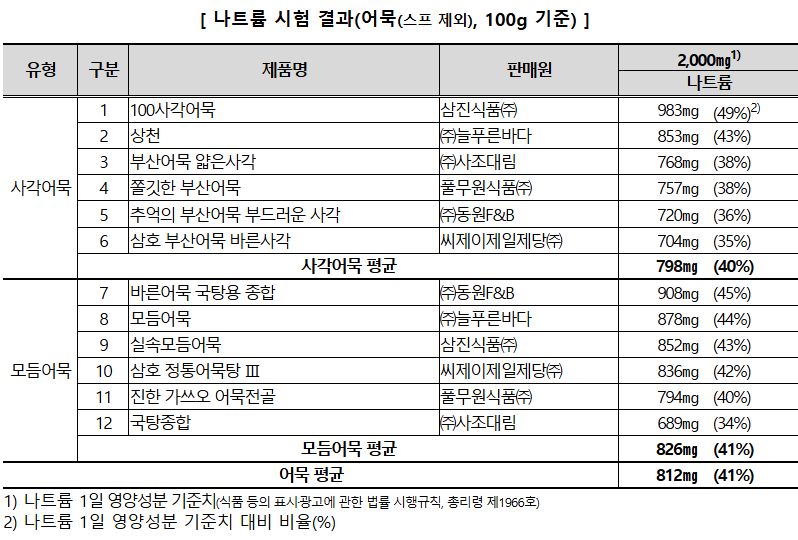 한국소비자원, 어묵(오뎅) 12종 비교: 문제는 없지만, 나트륨 섭취는 주의 본문