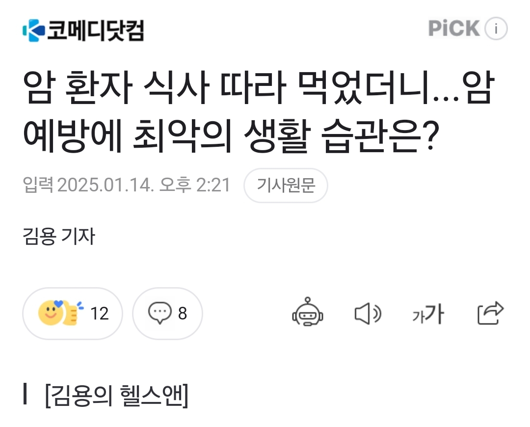 암환자는 잘 먹어야 한다는 기사 본문