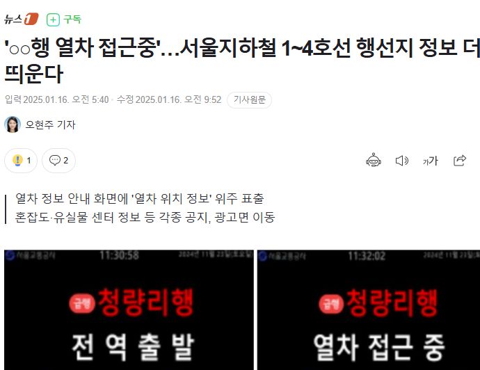'○○행 열차 접근중'…서울지하철 1~4호선 행선지 정보 더 띄운다