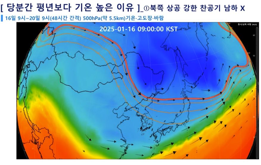당분간 기온이 평년보다 높습니다. 원인을 알아보겠습니다. (25년 1월 16일 기상청 예보브리핑)