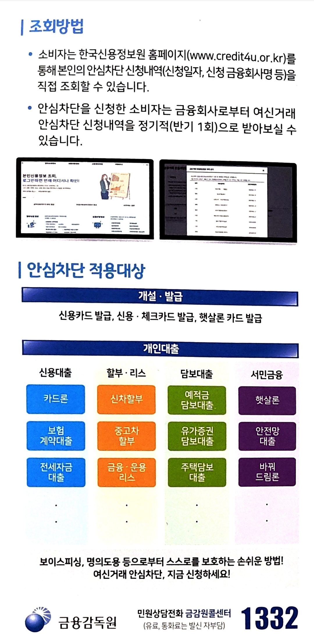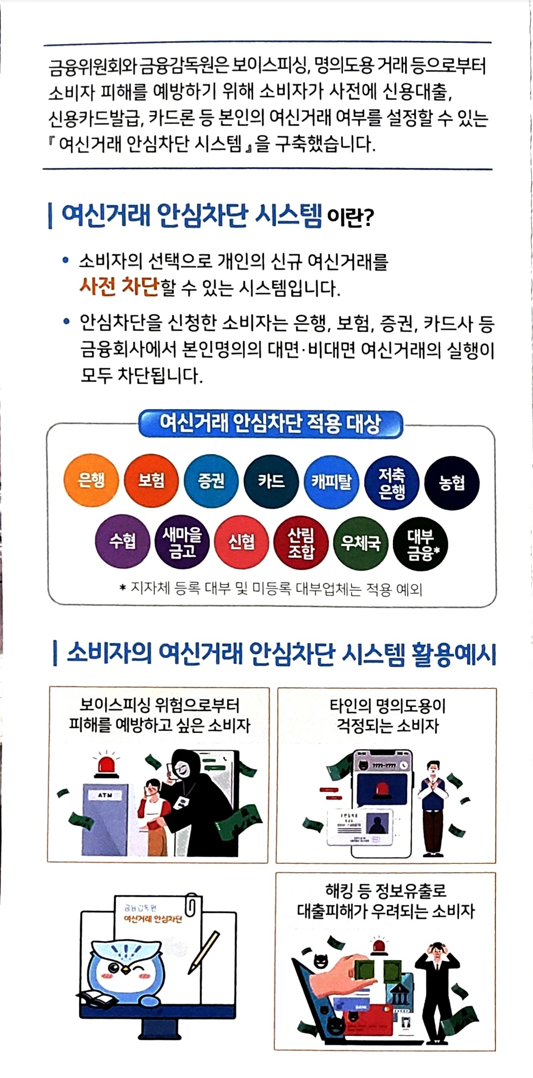 금융사기 예방을 위한 여신거래 안심차단 한 눈에 살펴보기 (금융감독원) 본문