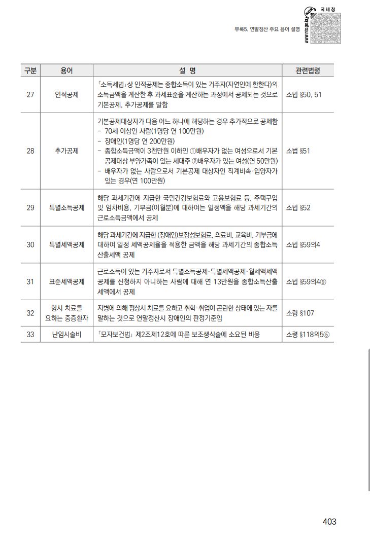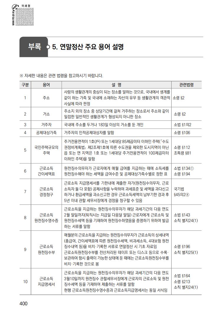부록: 연말정산 주요 용어 설명