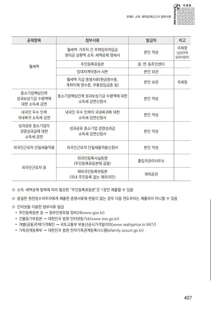 부록: 소득, 세액공제신고서 첨부서류
