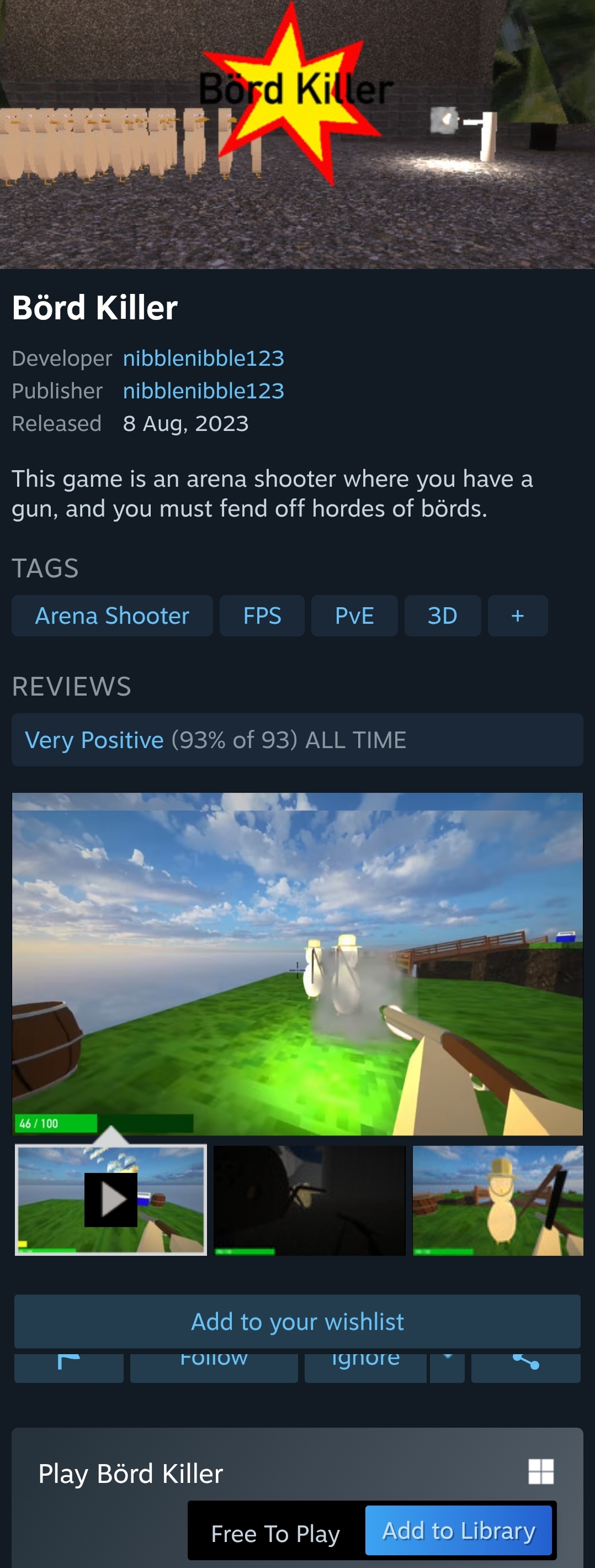 This game is an arena shooter where you have a gun, and you must fend off hordes of börds.