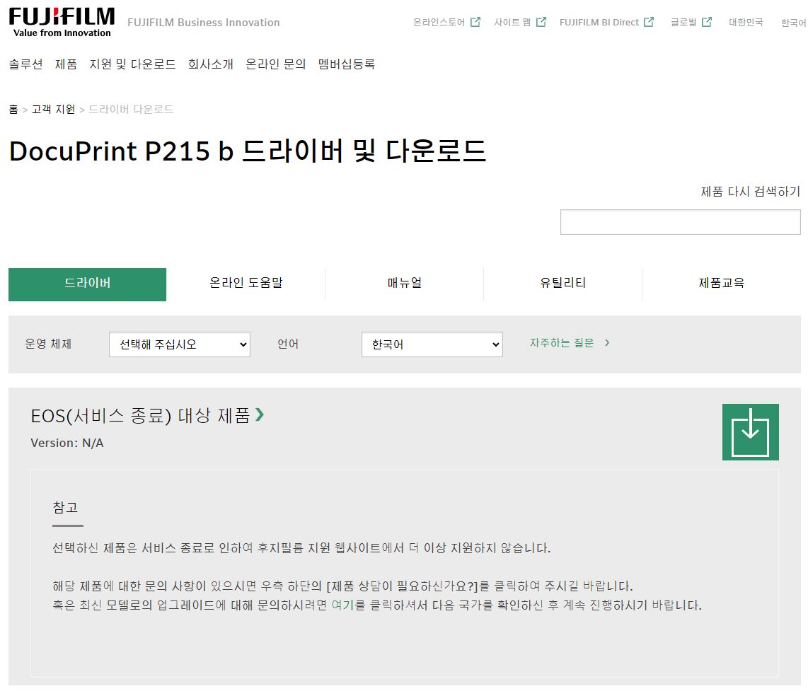 https://support-fb.fujifilm.com/setupDriverForm.do?ctry_code=KR&lang_code=ko&d_lang=ko&pid=DPP215b