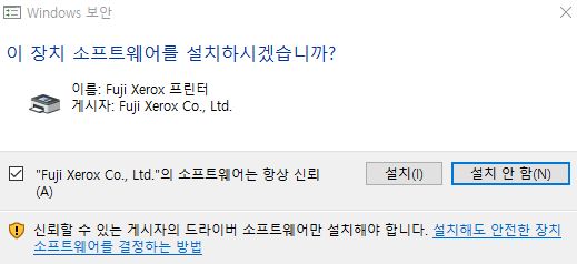 (전원을 켜서 대기상태인 프린터를 연결하면 장치를 찾지 못하는 멍청한 SW라서 그렇다. 생각해보니 후지제록스 레이저프린터는 처음 샀을 때도 그런 식으로 썼던 것 같기도 하다.)